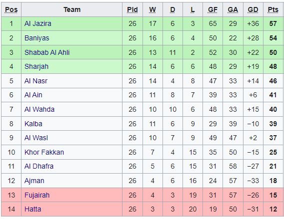 Итоговая таблица чемпионата ОАЭ 2020/21