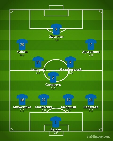Запас: Пятов, Трубин, Соболь, Кривцов, Степаненко, Макаренко, Беседин, Тымчик, Попов, Довбик.
