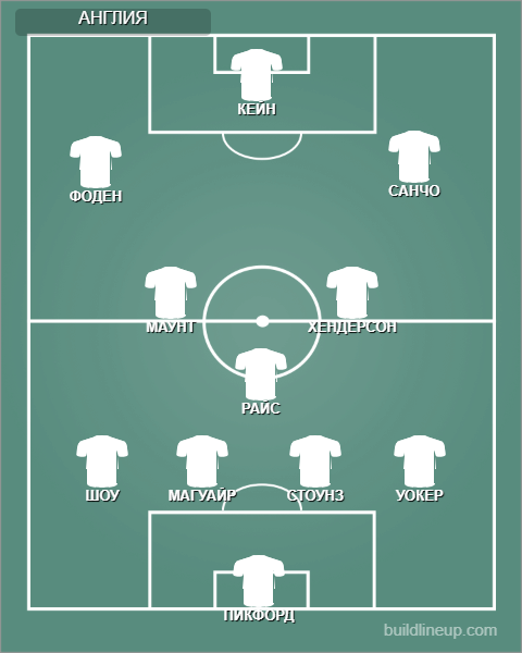 Нападающие: Доминик Калверт-Льюин («Эвертон»), Фил Фоден и Рахим Стерлинг (оба – «Манчестер Сити»), Джек Грилиш («Астон Вилла»), Маркус Рашфорд («Манчестер Юнайтед»), Гарри Кейн («Тоттенхэм»), Букайо Сака («Арсенал»), Джейдон Санчо («Боруссия» Дортмунд).