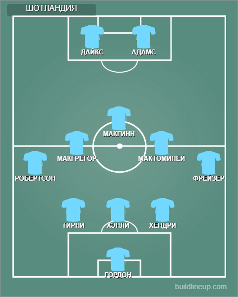 Главной звездой в составе нынешней сборной Шотландии является, конечно же, левый защитник «Ливерпуля» Эндрю Робертсон. 27-летний фулбек также является капитаном команды, и на него возлагаются серьезные надежды на родине. Впрочем, помимо Робертсона шотландцам также есть на кого надеяться, особенно в обороне и средней линии. Речь о 24-летнем хавбеке «Манчестер Юнайтед» Скотте Мактоминее, его ровеснике защитнике «Арсенала» Киране Тирни, а также 26-летнем Джоне Макгинне из «Астон Виллы», который в сезоне-2020/21 отличился 3 голами и 6 результативными передачами в АПЛ.