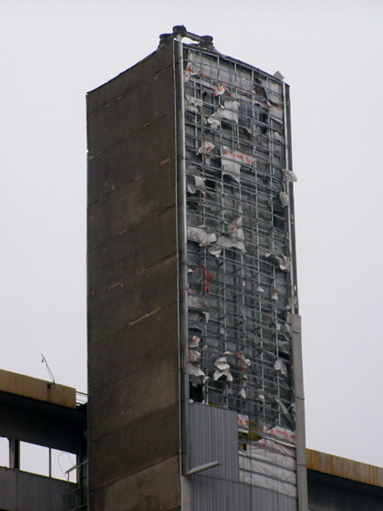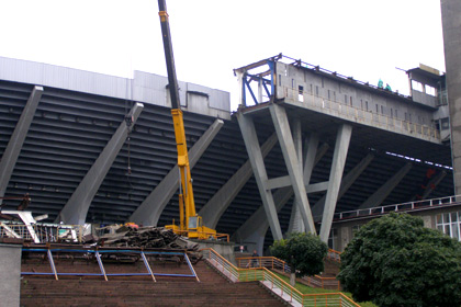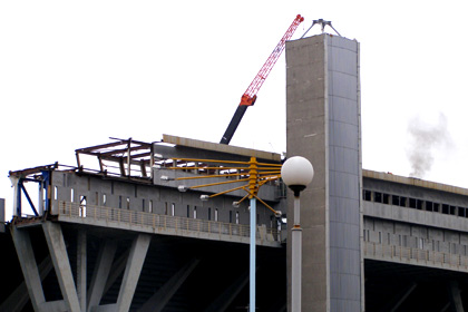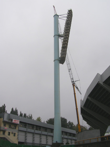 Также рабочие приступили к сносу последней осветительной мачты.