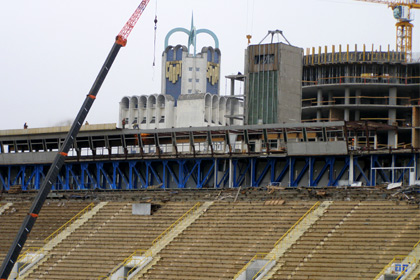 После завершения демонтажа бетонных конструкций первого яруса НСК «Олимпийский», о чем мы сообщали в предыдущем отчете, основной упор сделан на подготовку к реконструкции зданий на территории комплекса и разбор пресс-ложи.