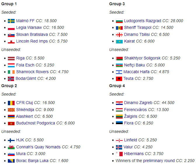 На этом этапе в борьбу вступают 32 команды. Среди них: участник группового этапа прошлого сезона «Ференцварош», четвертьфиналист Лиги Европы загребское «Динамо» и финалист Кубка чемпионов 1979 года «Мальме». Одну путевку получит победитель предварительного раунда, который определится 25 июня.