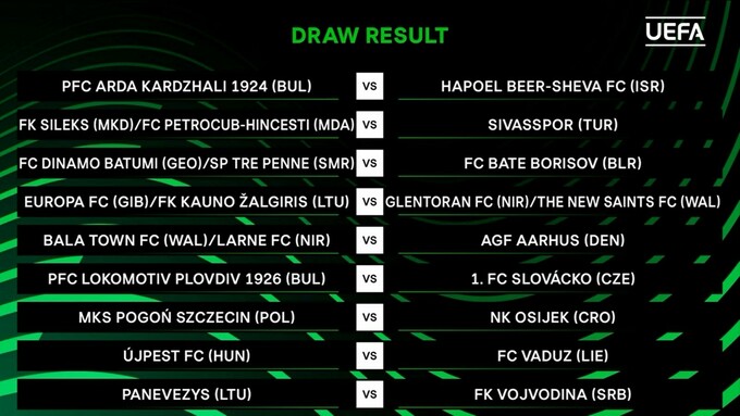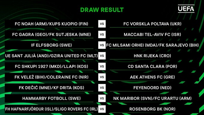 На этом этапе в игру вступит полтавская «Ворскла», занявшая 5-е место в УПЛ. Полтавчане, которые находятся в числе сеяных команд, по результатам жеребьевки будут играть против победителя пары Ноа (Армения) – КуПС (Финляндия). Украинская команда первую игру проведет на выезде, а вторую – дома.
