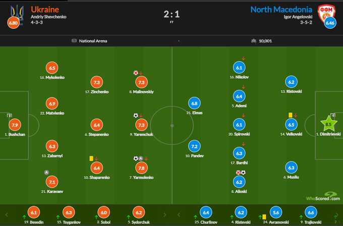 Whoscored. Украина - Северная Македония. Лучшими в матче стали вратари