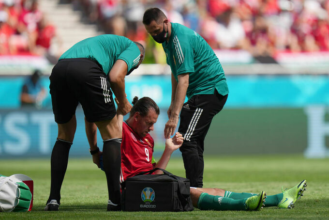 Всё остальное было иногда очень опасно – и удары Мбаппе головой, и выстрел Бензема после паса пяткой с лёта в исполнении того же Мбаппе. Пауза, объявленная арбитром для того, чтобы игроки попили воды, казалось, должна была пойти на руку венграм. Но случился неприятный эпизод. Сразу после водопоя упал на газон капитан сборной Венгрии Адам Салаи. Похоже, случился тепловой удар или резко скакнуло давление из-за большого объема выпитой холодной воды. Как бы то ни было, Марко Росси вынужден был делать первую замену уже в середине первой половины игры.