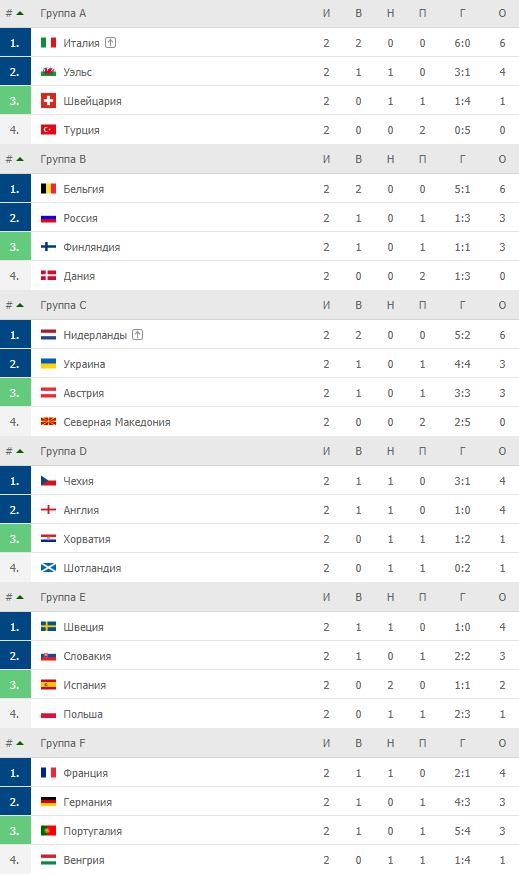 Турнирные таблицы Евро-2020. При каких раскладах Россия вылетит с турнира