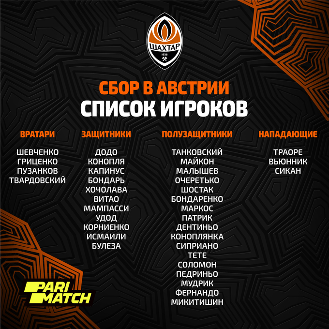 Известен список игроков Шахтера, которые отправились на сбор в Австрию