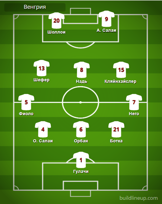 Венгрия: Гулачи – Фиоло (Николич, 87), О. Салаи, Орбан, Ботка, Него – Шефер, Надь, Кляйнхайслер (Ловренчич, 87) – Шоллои, А. Салаи (К. Варга, 82).