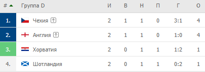 Чехия – Англия. Матч за победу в группе D. Стартовые составы команд