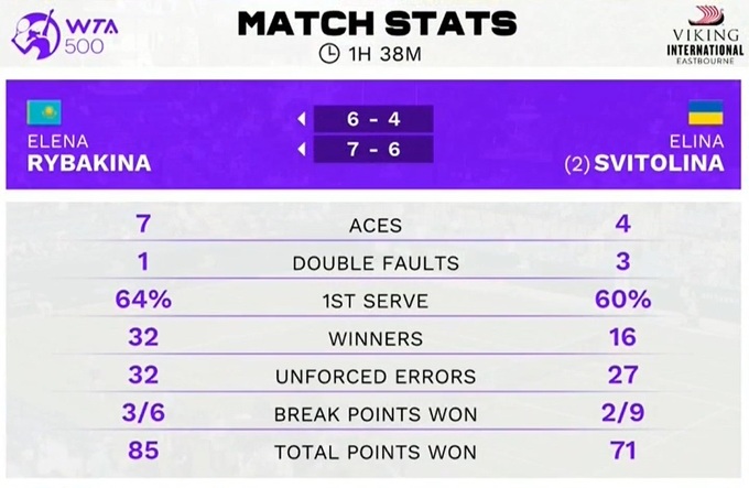 Рыбакина не так много до этого играла на траве, но имела отличный процент выигранных матчей (9 из 12). Свитолина даже на бумаге была совсем небольшим фаворитом, но все понимали, что это больше связано с ее рейтингом.