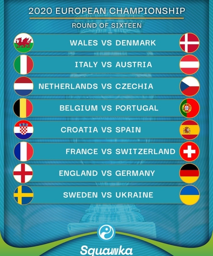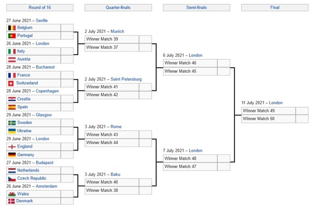 29 июня Украина сыграет против Швеции. Победитель пары Украина - Швеция выйдет на победителя пары Англия - Германия.