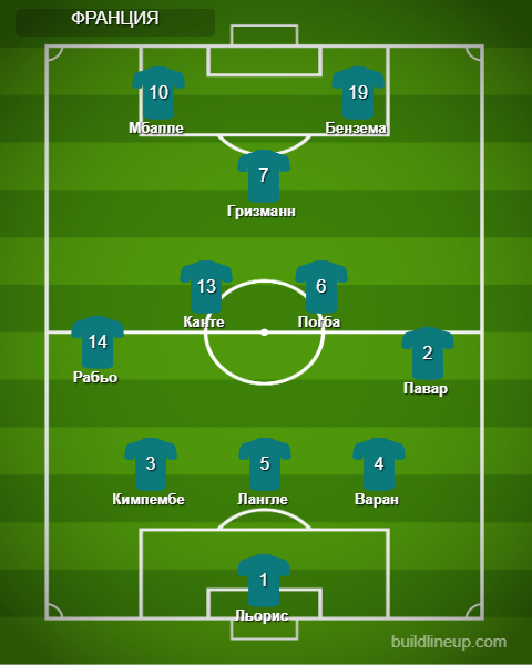 Франция: Льорис, Варан, Лангле (Коман, 46, Тюрам, 111), Кимпембе, Павар, Погба, Канте, Рабьо, Гризманн (Сиссоко, 88), Бензема (Жиру, 94), Мбаппе.