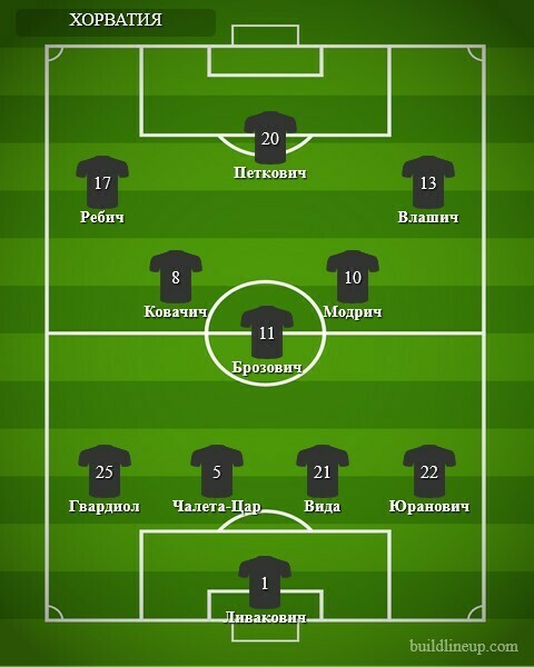 Хорватия: Ливакович, Гвардиол, Чалета-Цар, Вида, Юранович (Брекало, 74), Ковачич (Будимир, 79), Модрич (Иванушец, 114), Брозович, Влашич (Пашалич, 79), Ребич (Оршич, 67), Петкович (Крамарич, 46).