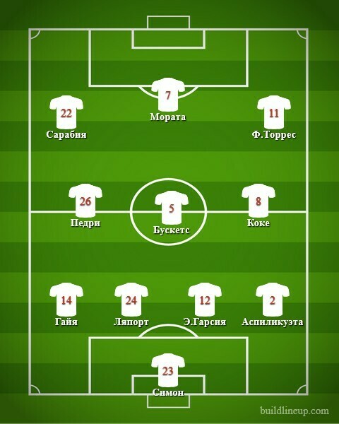 Запас: де Хеа, Санчес, Льоренте, Льоренте, Морено, Алькантара.