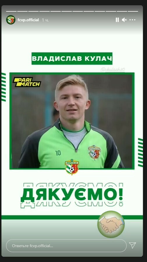Полтавский клуб попрощался с Кулачем в stories Instagram. Пока неизвестно, где продолжит карьеру Владислав.