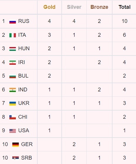 В общем зачете сборная Украины с тремя медалями занимает седьмое место.