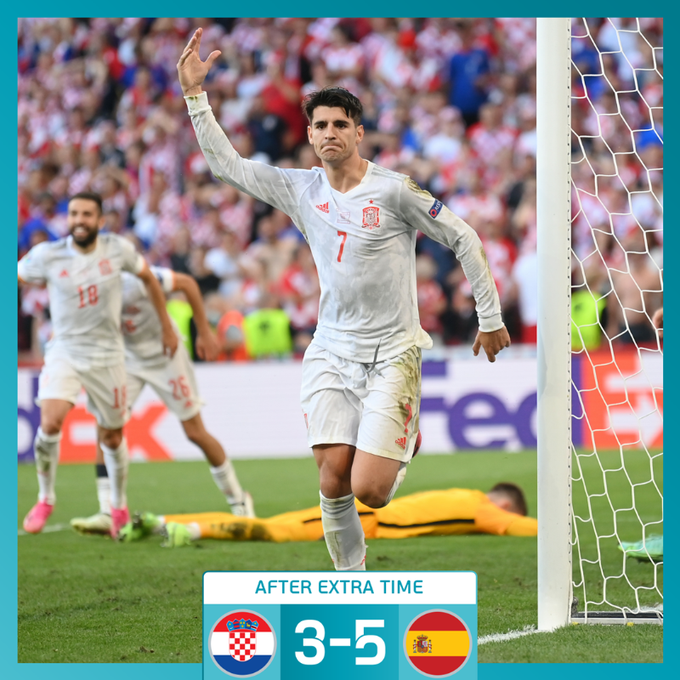 Хорватия в концовке второго тайма отыграла два мяча у Испании, но уступила в дополнительное время (3:5). А вот Швейцария преподнесла сенсацию, ликвидировав такое же отставание в два мяча и выиграв затем серию пенальти (3:3, пен. 5:4).