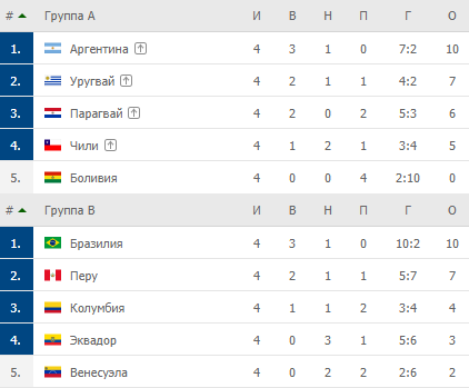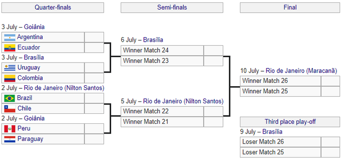 В других матчах сойдутся: Уругвай против Колумбии, а Перу против Парагвая. Четвертьфиналы пройдут 2 и 3 июля.