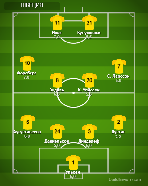 Замены Швеции: Крафт – 5,5, Бенгтсон – 5,5, Классон – 5,5, Берг – 5,5, Квайсон – 5,5.