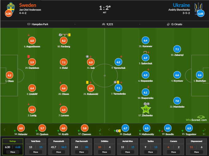 ФОТО. Оценки WhoScored за матч Швеция – Украина – 1:2.
