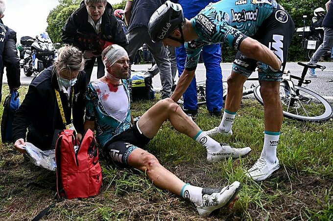Десятки спортсменов получили травмы в результате аварии. Гонщик Яша Зюттерлин из команды DSM был вынужден сойти с гонки из-за травмы.
