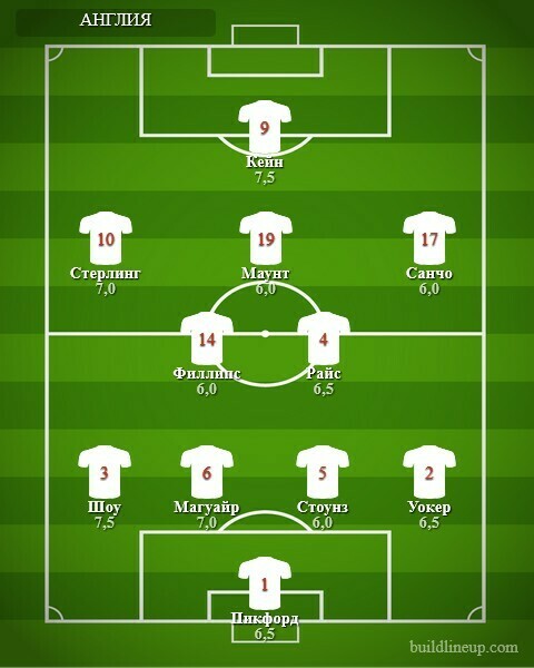 Наиболее высокие оценки у Англии получили Гарри Кейн, Люк Шоу (7.5), Рахим Стерлинг и Гарри Магуайр (7.0).