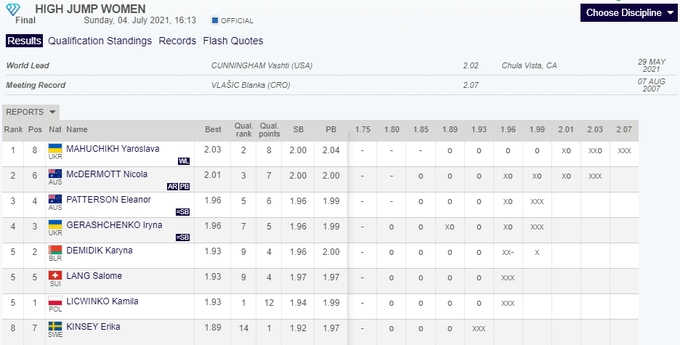 - 1. Ярослава Магучих (Украина) – 2.03 м