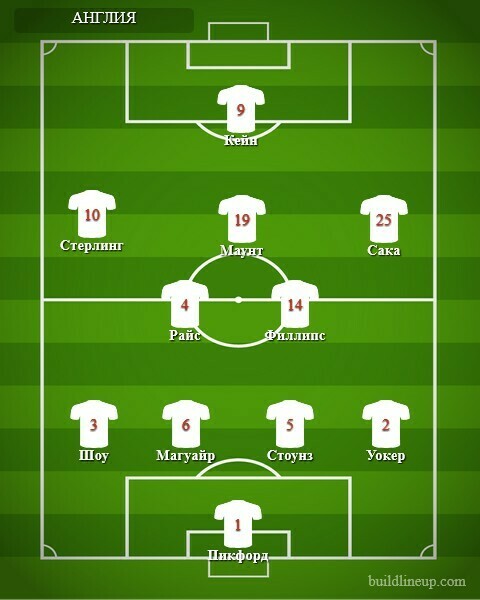 Англия: Пикфорд, Шоу, Магуайр, Стоунз, Уокер, Райс (Хендерсон, 95), Филлипс, Стерлинг, Маунт (Фоден, 95), Сака (Грилиш, 69; Триппьер, 106), Кейн.