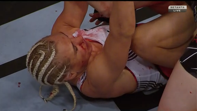 06:03. У россиянки все лицо в крови. А Алдана говорит, что хочет замахнуться на титул.