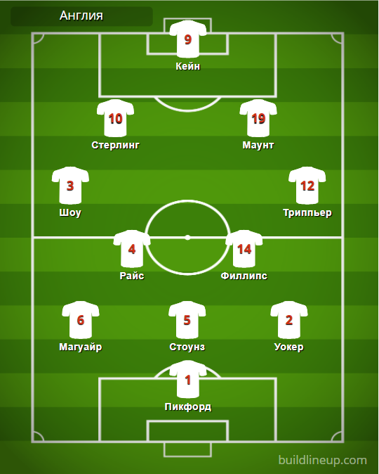 Англия: Пикфорд – Магуайр, Стоунз, Уокер (Санчо, 120) – Шоу, Райс (Хендерсон, 74, Рашфорд, 120), Филлипс, Триппьер (Сака, 70) – Стерлинг, Маунт (Грилиш, 99) – Кейн.