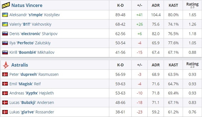 Команда Александра s1mple Костылева вышла в полуфинал турнира. Astralis сыграет в четвертьфинале турнира.