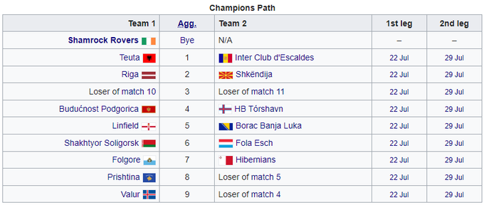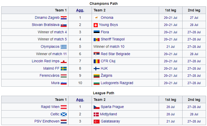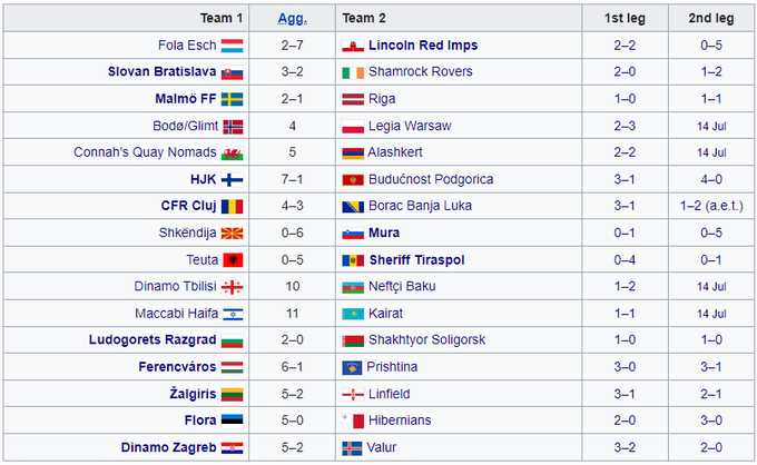 Результаты Q1 ЛЧ (победители – в Q2 ЛЧ, проигравшие – в Q2 ЛК)