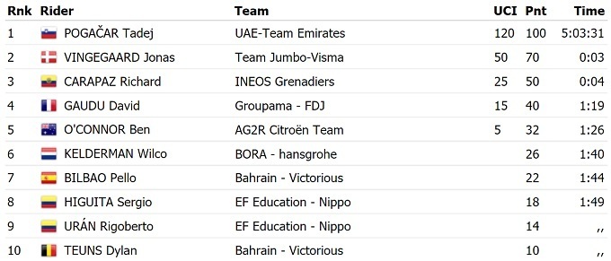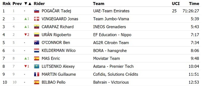 Словенский гонщик команды «UAE Emirates» Тадей Погачар выиграл 17-й этап Тур де Франс-2021 и укрепил лидерство в общем зачете. Действующий чемпион «Большой петли» сегодня опередил Йонаса Вингегора и Ричарда Карапаса.