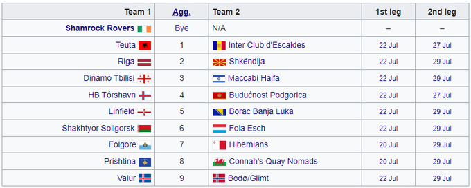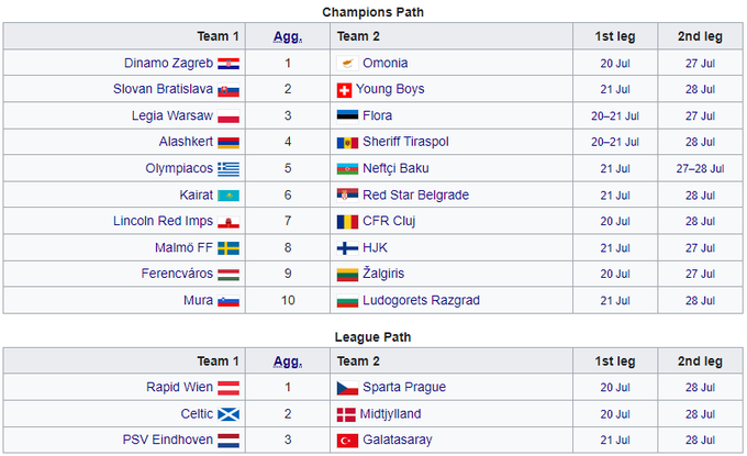 Результаты Q1 ЛЧ (победители – в Q2 ЛЧ, проигравшие – в Q2 ЛК)