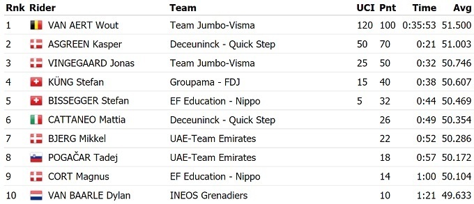 Бельгийский гонщик команды «Jumbo Visma» Воут Ван Арт стал победителем гонки с раздельным стартом на 31 км на 20-м этапе Тур де Франс-2021.