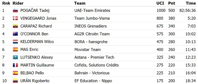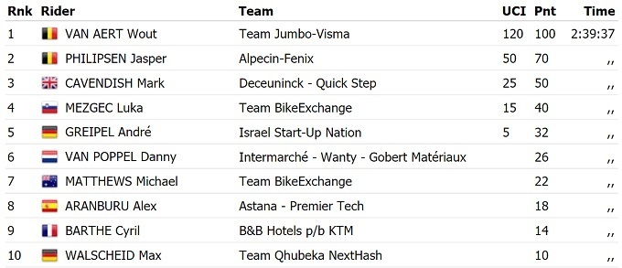 Победителем заключительного этапа в Париже стал бельгиец Воут Ван Арт из «Jumbo Visma». Для него это третья победа на нынешнем Туре и вторая подряд.