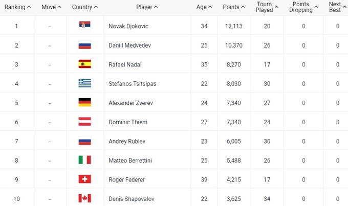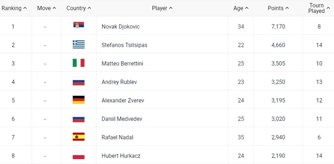 Карреньо-Буста поднялся на 11-ю позицию в мировом рейтинге, Рууд – на 14-ю. Изменений в первой десятке не произошло.