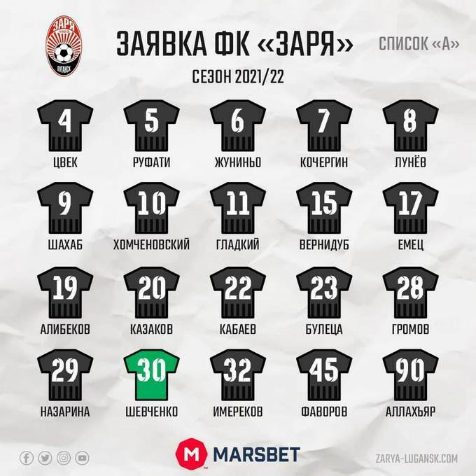 Заря заявилась на первую часть сезона