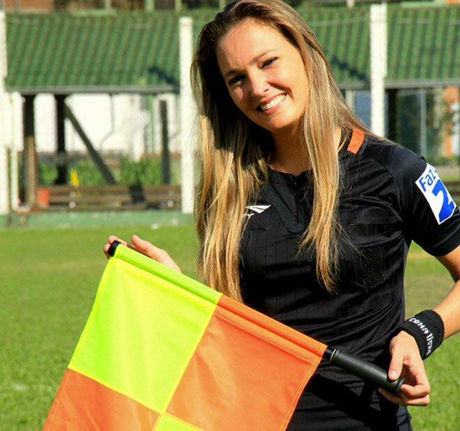 Эффектная рефери-блондинка Фернандо Коломбо Улиана является одной из самых красивых женщин-арбитров в мужском футболе. Свою профессиональную судейскую карьеру бразильянка начала в 23 года, работая на матчах команд из низших дивизионов. Впрочем, в 2014 году получила назначение на матч бразильской Серии А между командами «Атлетико Минейро» - «Крузейро». К сожалению, тогда сказалось волнение ассистентки арбитра, которая в одном из моментов зафиксировала спорный офсайд, когда игрок гостей забил гол. После игры красавице-лайнсмену сильно досталось от футболистов и руководства «Крузейро». Те даже советовали ей лучше попробовать себя в роли фотомодели известного эротического журнала. Несмотря на этот скандальный эпизод в начале ее карьеры, Фернанда Коломбо мужественно выдержала шквал критики и не прислушалась к «дружеским» советам футболистов. Она продолжает судить матчи в элите бразильского футбола и в чемпионатах стран Южной Америки, время от времени отмечаясь разнообразными забавными выходками.