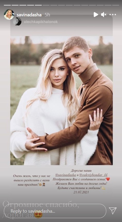 ФОТО. Бондарь и Даша Савина поженились
