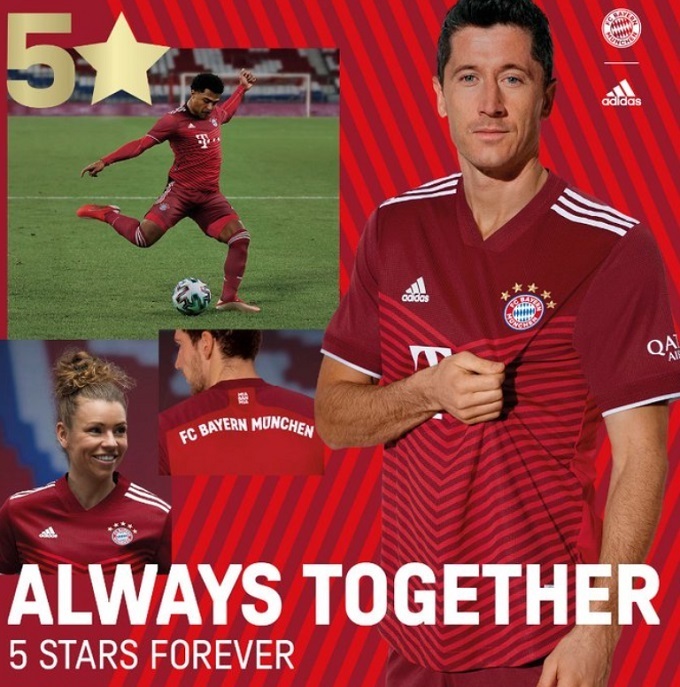 «Бавария» официально представила домашний комплект формы на новый сезон. Теперь над эмблемой клуба изображены не 4, а 5 звезд, поскольку в прошлом сезоне клуб выиграл свое пятое чемпионство. В Германии одна звезда нашивается за 6 чемпионских титулов.