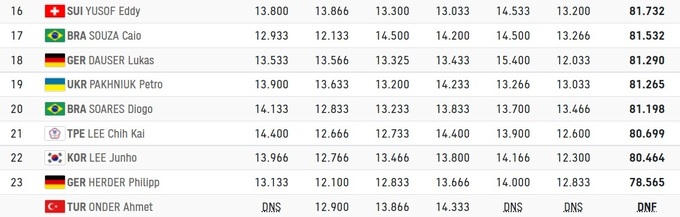 Отметим, что Пахнюк еще выступит в финале на брусьях (3 августа). Сегодня он выступил на этом снаряде неудачно, допустив ошибку.
