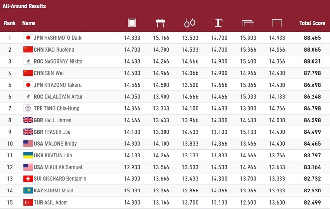 Победу одержал 19-летний японец Дайки Хашимото, вторым стали китаец Сяо Жотен, замкнул тройку призеров представитель команды ОКР Никита Нагорный.