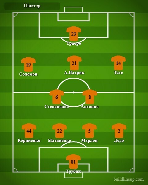 «Шахтер»: Трубин, Корниенко (Исмаили, 64), Матвиенко, Марлон, Додо, Степаненко, М.Антонио (Майкон, 73), Тете (Марлос, 65), Соломон, А.Патрик (Педриньо, 72), Траоре (Дентиньо, 84).