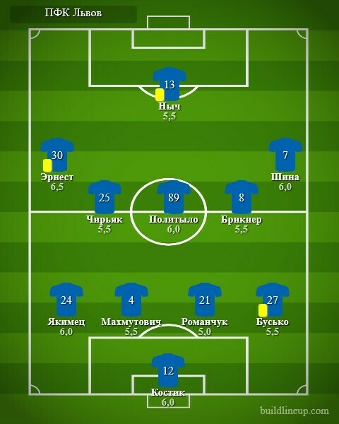 Замены «Львова»: Ренан - 5,0; Альваро - 5,5; Крушинский - 5,0; Зозуля - б/о; Хамелюк - б/о.