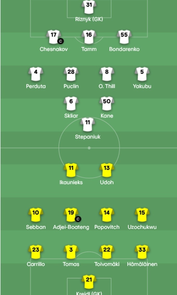 Ворскла: Ризнык, Пердута, Чеснаков, Тамм, Бондаренко, Пуцлин, Скляр, Тилль, Якубу, Кане, Степанюк