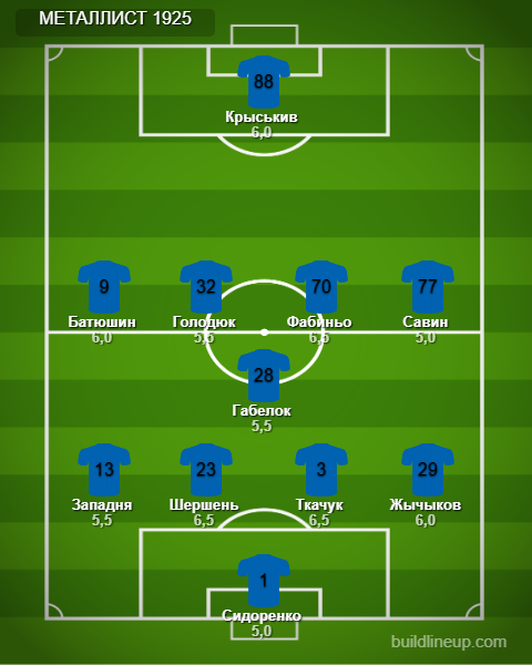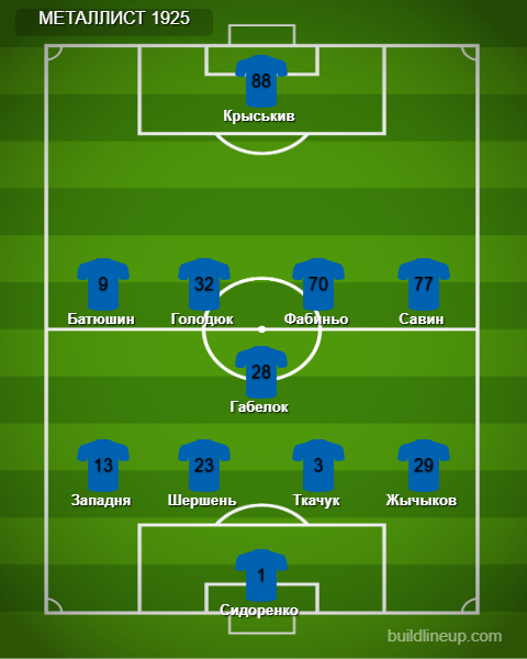 «Металист 1925»: Сидоренко, Жычыков, Ткачук, Шершень, Западня, Габелок, Савин (Протасов, 59), Фабиньо (Ременюк, 78), Голодюк (Ермаков, 90), Батюшин (Дмитренко, 78), Крыськив.