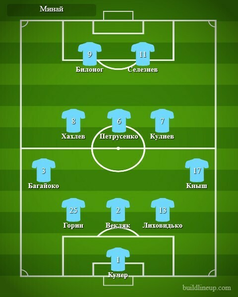 «Минай»: Кучер, Багайоко, Горин, Векляк, Лиховидько, Кныш (Гончар, 58), Хахлёв (Месхи, 70), Петрусенко, Кулиев (Байдал, 78), Билоног (Вишневский, 78), Селезнев (Ахмедзаде, 70).