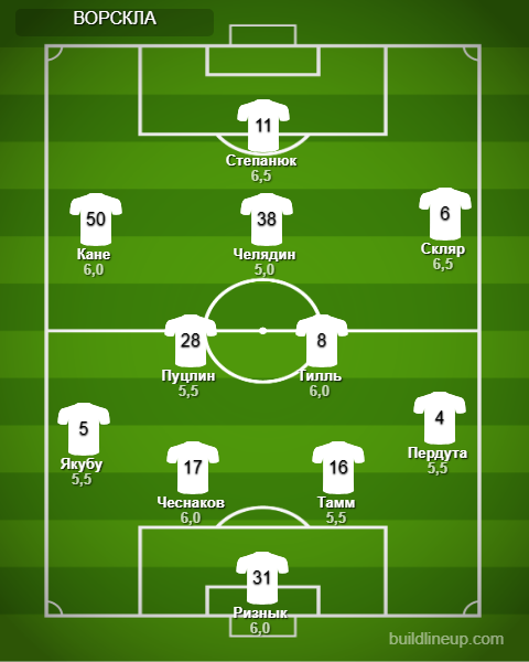 Замены «Ворсклы»: Вакула - 5,0 Луизао - 5,0, Пешич - 5,0, Кравчук - б/о.